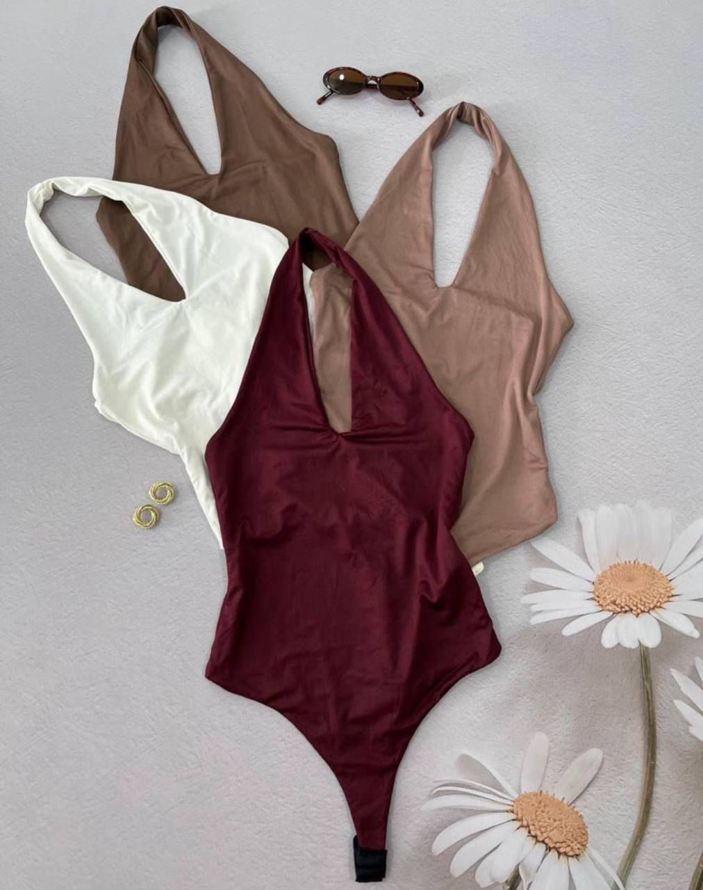 Su diseño de escote profundo y corte halter resalta la figura con un toque moderno y atrevido, perfecto para quienes aman sentirse seguras y radiantes.